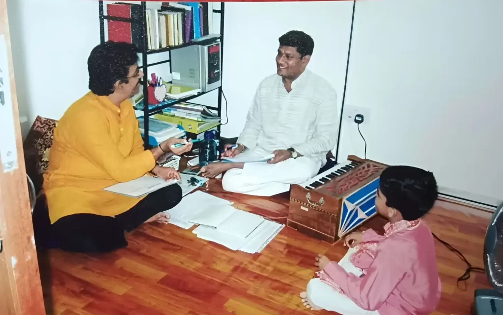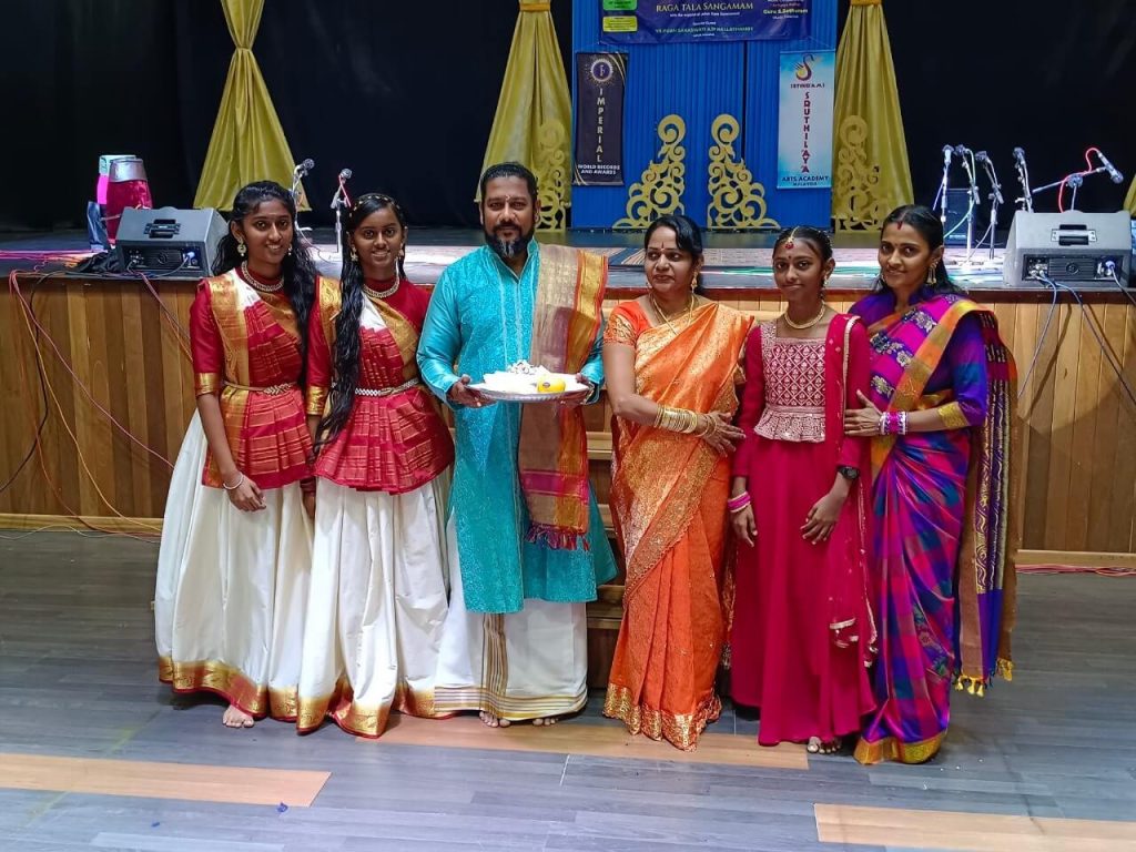 Before the performance, we conduct a Guru Pooja and honor the philosophy of Matha, Pitha, Guru, Deivam (Mother, Father, Teacher, and God). This practice teaches students, especially those outside India, the deep cultural values of respecting parents, teachers, and the divine before stepping onto the stage.